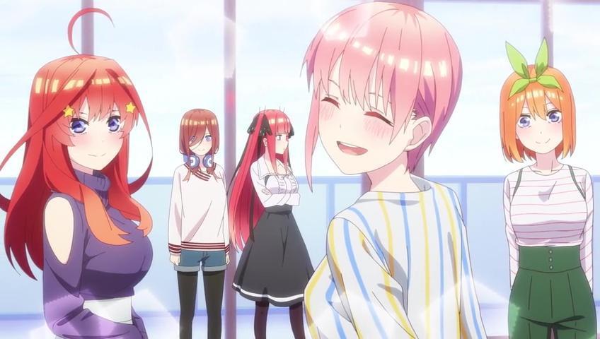 | Pengisi Suara | Yoshitsugu Matsuoka sebagai Futaro Uesugi Ayana Taketatsu sebagai Nino Nakano Ayane Sakura sebagai Yotsuba Nakano Inori Minase sebagai Itsuki Nakano Kana Hanazawa sebagai Ichika Nakano Nakano Itō sebagai Miku Nakano Natsumi Takamori sebagai Raiha Uesugi Satoshi Hino sebagai Isanari Uesugi |