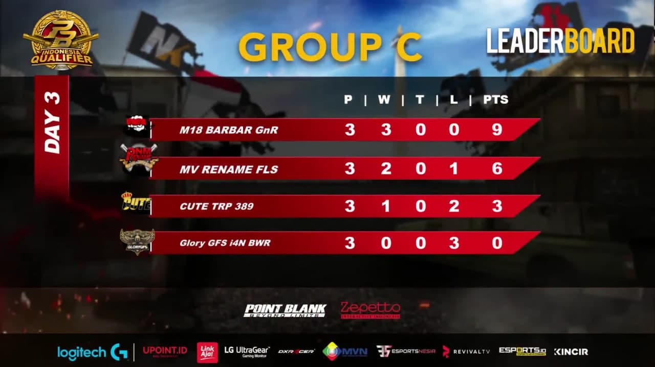 Tak seperti minggu lalu, persaingan di grup C dan D Point Blank Indonesia Qualifier (PBIQ) 2020 terbilang tidak terlalu ketat. M18 BARBAR GnR tampil dominan di grup C dengan poin sempurna hasil 3 kemenangan beruntun. Jote Cs berhasil menaklukkan MV RENAME FLS (10-7), GLORY GFS i4N BWR (10-7) dan CUTE TRP 389 (6-5). Sedangkan tiket terakhir grup C berhasil direbut tim MV RENAME FLS usai menaklukkan CUTE TRP 389 dengan skor 8-6.