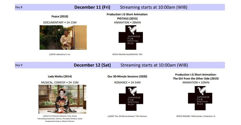 Berikut kami sertakan jadwal tayang JFF Plus: Online Festival di Indonesia: