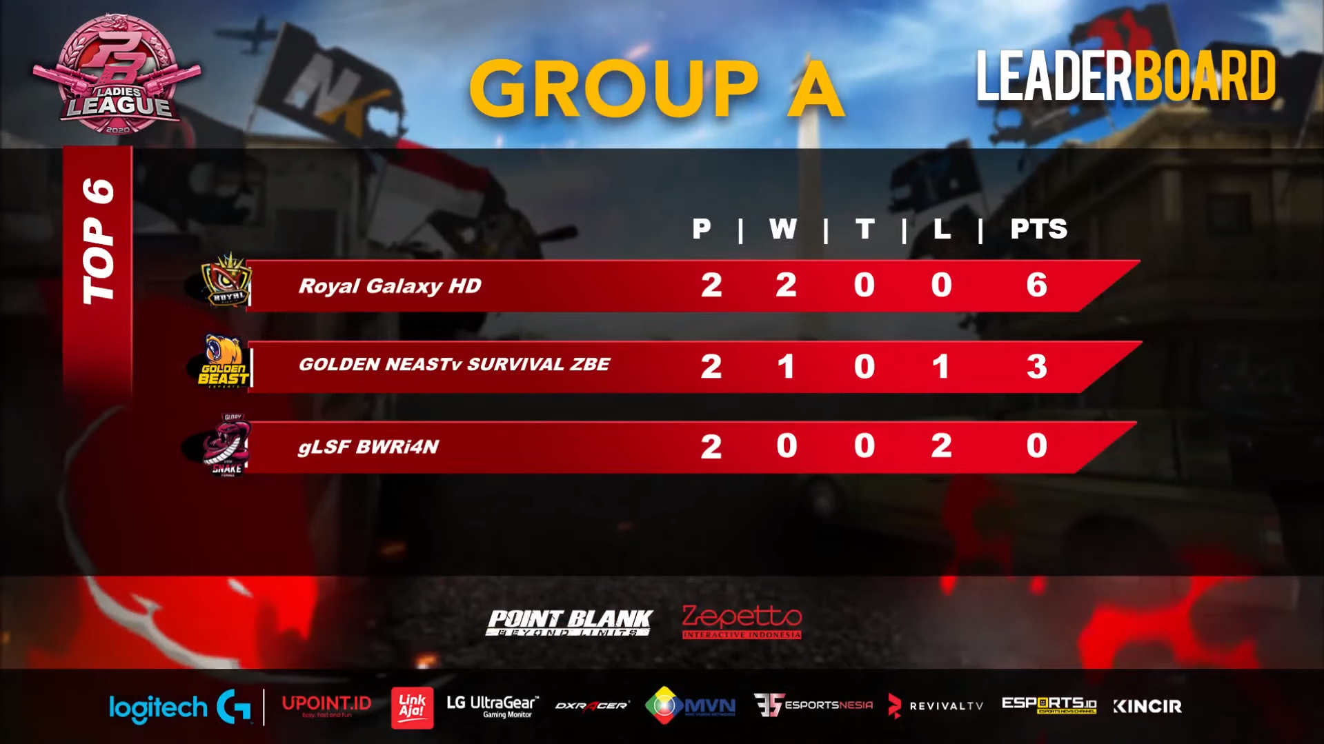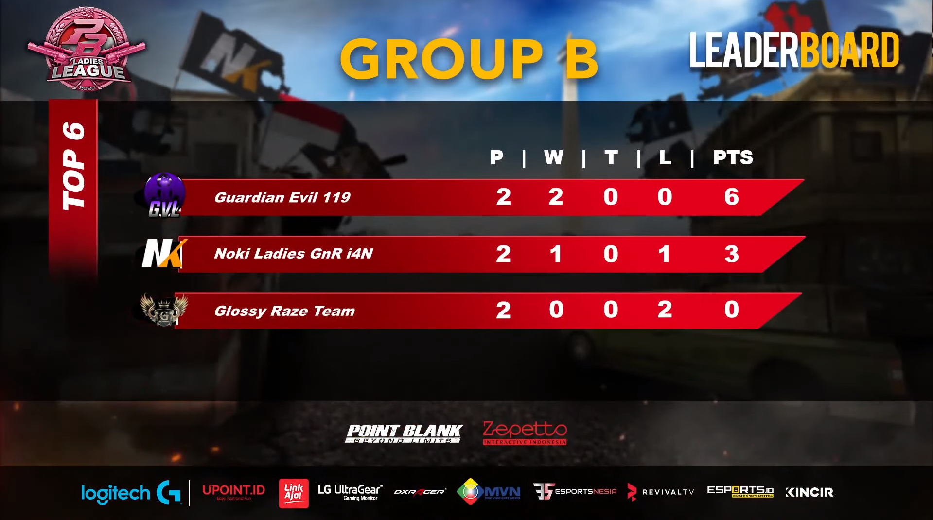 Pada tanggal 21 November 2020 kemarin, Point Blank telah menyelanggarakan babak group stage dari Point Blank Ladies League/PBLL yang menampilkan enam tim terkuat, yaitu Royal Galaxy HD KRS, Golden Beastv Survival ZBE, Guardian Evil 199 ADN, Noki Ladies GnR i4N, gLSF BWR i4N, dan Glossy Raze Team.
