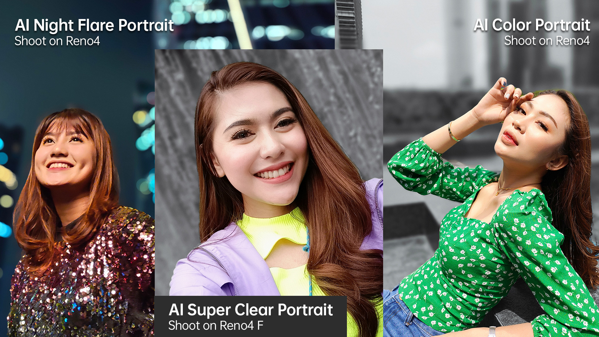 Perangkat terbaru OPPO Reno4 hadir dengan fitur yang berkaitan erat dengan fotografi dan videografi. Di seri ini, OPPO juga hanya fokus pada satu fitur saja yakni AI Color Portrait. Dengan fitur yang popular di kalangan anak muda ini, OPPO Reno4 dapat melakukan sebuah penyuntingan gambar yang sangat sulit dilakukan oleh konsumen pemula. AI Color Portrait dapat membuat latar belakang gambar menjadi hitam-putih, sedangkan objek orang dalam foto akan tampil sesuai dengan warna aslinya. Uniknya, fitur ini dapat digunakan saat memotret atau merekam video. Fitur video lainnya yang tak kalah menarik adalah AI Monochrome Video, yang secara prinsip dasar sama dengan fitur AI Color Potrait. Bedanya fitur ini dapat menghadirkan warna tertentu seperti merah, hijau atau biru untuk objek foto. Terakhir, OPPO juga membawa fitur AI Night Potrait untuk membantu pengguna menghasilkan foto potret memukau di malam hari.