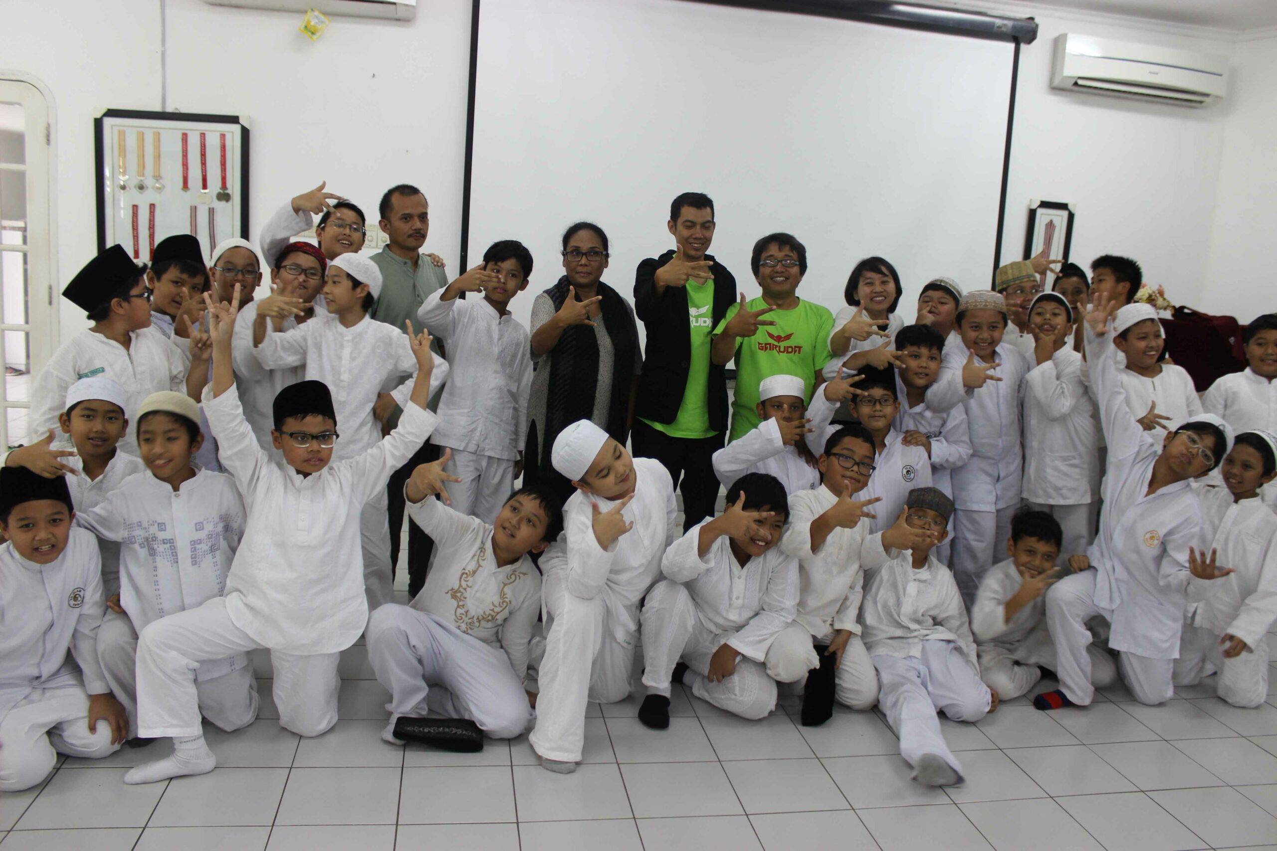 Pada kesempatan kali ini, murid-murid dari SD Tugasku berkesempatan untuk mengetahui proses pembuatan film. Sebuah Green Screen pun disiapkan di aula SD tersebut untuk menunjukkan cara kerja teknologi CG dalam sebuah film.