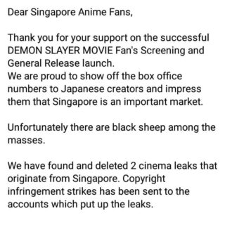 Film Layar Lebar Kimetsu no Yaiba Bocor di Singapura