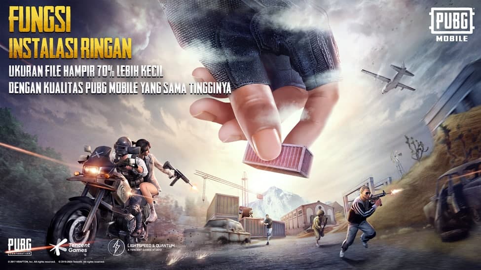 Maka dari itu nggak jarang banyak orang yang lebih beralih ke game lain dibanding harus memainkan PUBG Mobile. Tapi sekarang semua itu sudah teratasi. Karena game ini baru saja melakukan update dan merilis fitur baru, yaitu Lightweight Function (Fungsi Instalasi Ringan) sehingga para pemain bisa memainkannya dengan lancar bahkan di smartphone dengan spesifikasi ruang penyimpanan yang tidak terlalu besar.