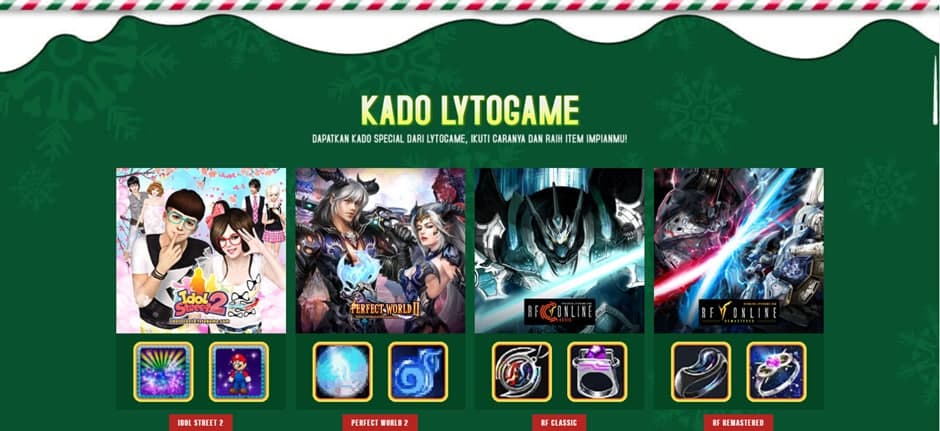 Pada event Holiday with Lytogame kali ini, kalian bisa langsung mendapatkan kado spesial dari Lytogame, dan juga ikut serta dalam Flash Sale Akhir Tahun!