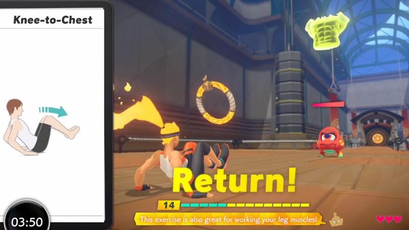 Sebagai seseorang yang jarang sekali melakukan aktifitas fisik, hari pertama saya bermain berakhir basah kuyup dengan keringat dan pegal-pegal di sekujur badan yang berlangsung selama beberapa hari. Namun, berhubung saya sudah terlanjur komit dengan gim ini, saya tetap melanjutkan petualangan saya selama badan saya masih menyanggupi. Terlepas dari itu, Ring Fit Adventure memiliki insentif yang banyak bagi para pemain untuk tetap melanjutkan petualangan-sambil-berolahraga, seperti indikator berapa kalori yang telah terbakar selama 1 sesi permainan, yang membuat para pemain dapat mencatat progress setiap sesinya.