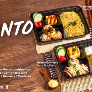 Tersedia 2 varian Bento yaitu Rice Bento dan Garlic Pasta Bento: