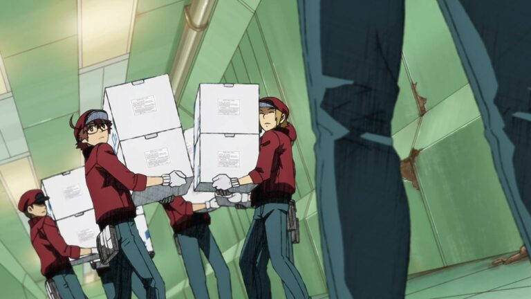 Satu yang saya suka dari anime ini adalah nuansa madesu tersebut juga berhasil dibangun secara subtil lewat detil-detil kecil, seperti penggunaan warna yang sedikit lebih monoton, artstyle yang terlihat lebih “kasar” dan juga adegan minim lagu latar (BGM) yang disertai efek suara ambience di pertengahan episode untuk memperkuat nuansa tersebut. Begitupun dengan penempatan narasi eksposisi dari tiap sel-sel tubuh yang kini terasa tidak terlalu menghambat jalan cerita seperti di seri originalnya