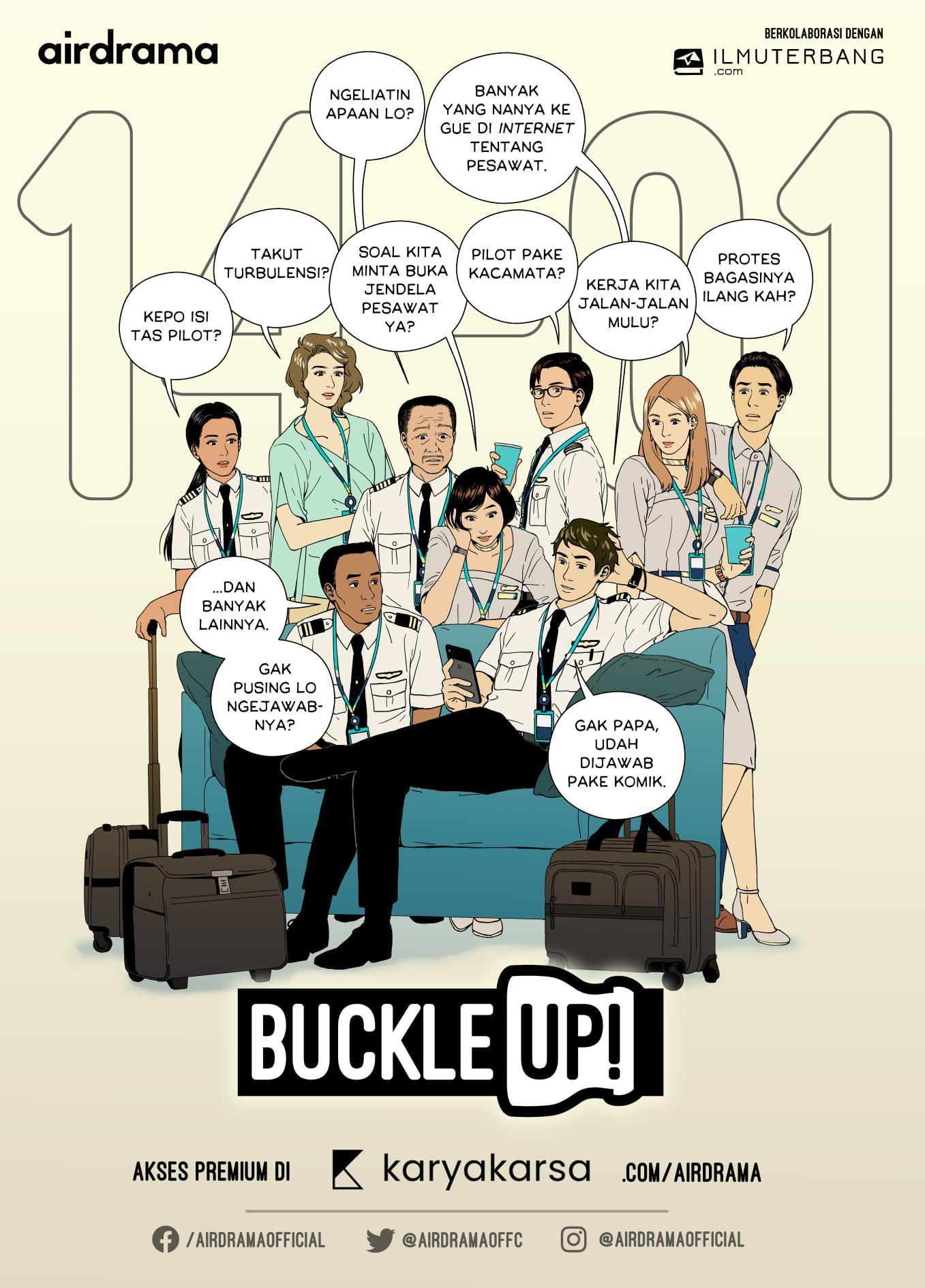 BUCKLE-UP! sendiri bersettingkan di tahun 2019, dan berpusat pada co-pilot Elang sedang menjalani ujian terbangnya di pesawat A320 melalui berbagai bandara di Indonesia. Ikuti kisahnya sambil menambah berbagai pengetahuan umum tentang penerbangan sipil Indonesia. Komik BUCKLE-UP! sendiri telah diterbitkan sejak tanggal 14 Januari 2021 lalu, dan terbit setiap hari Kamis hingga Maret 2021 yang bisa dibaca ekslusif di KaryaKarsa. Banyak pertanyaan-pertanyaan umum tentang penerbangan komersial yang dijawab di sini, seperti tentang boleh tidaknya pilot memakai kacamata, kenapa jendela pesawat harus dibuka saat lepas landas dan mendarat, dan lain sebagainya.