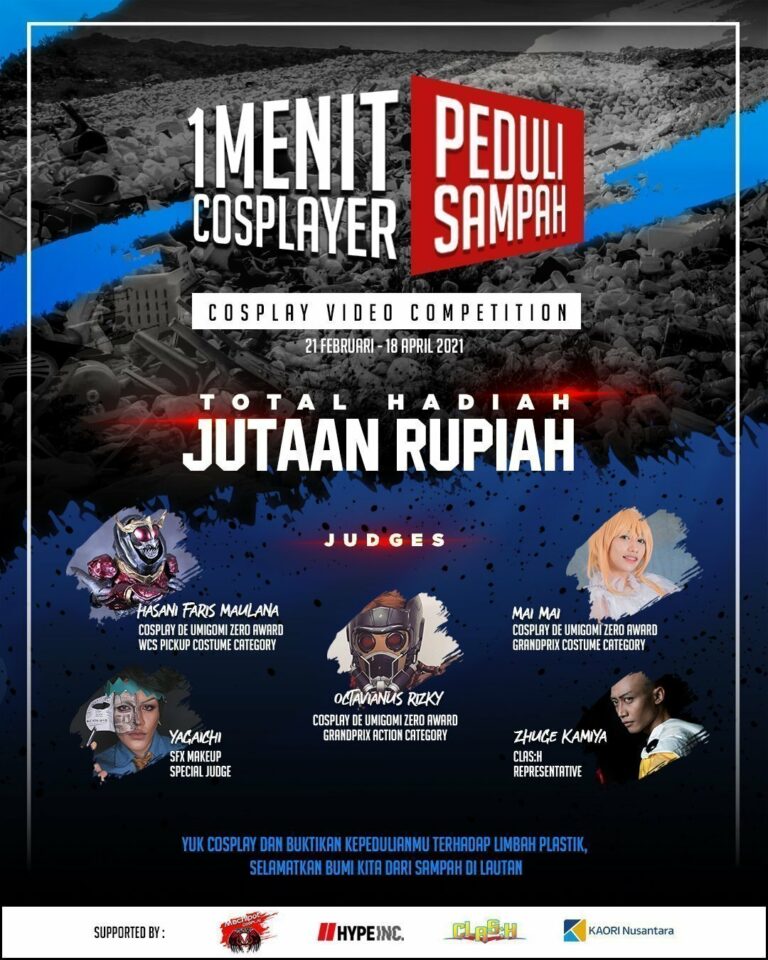 Bertepatan dengan hari Peduli Sampah Nasional dan meningkatkan kesadaran untuk kelestarian lingkungan, kompetisi video cosplay bertajuk “1 Menit Cosplayer Peduli Sampah” akhirnya digelar. Lewat kompetisi ini, kami mencari cosplayer yang dapat melakukan kegiatan 3R dan inisiatif yang bertujuan memerangi sampah plastik, termasuk kegiatan 3R yang mengarah pada pengurangan sampah dilaut dan upaya peningkatan kesadaran akan sampah laut.