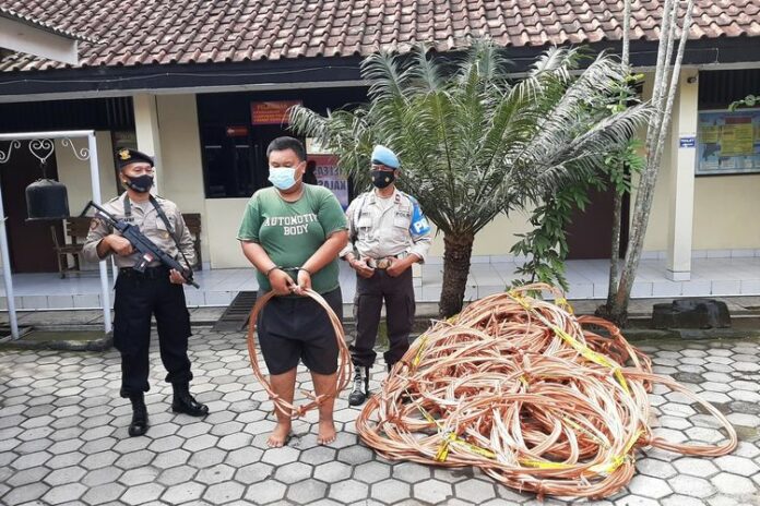 “Tersangka MT ini menjual kabel tanpa sepengetahuan atau izin dari perusahaanya,” ujar Kapolsek Kalasan Kompol Sumantri dalam jumpa pers pada Rabu (31/3).