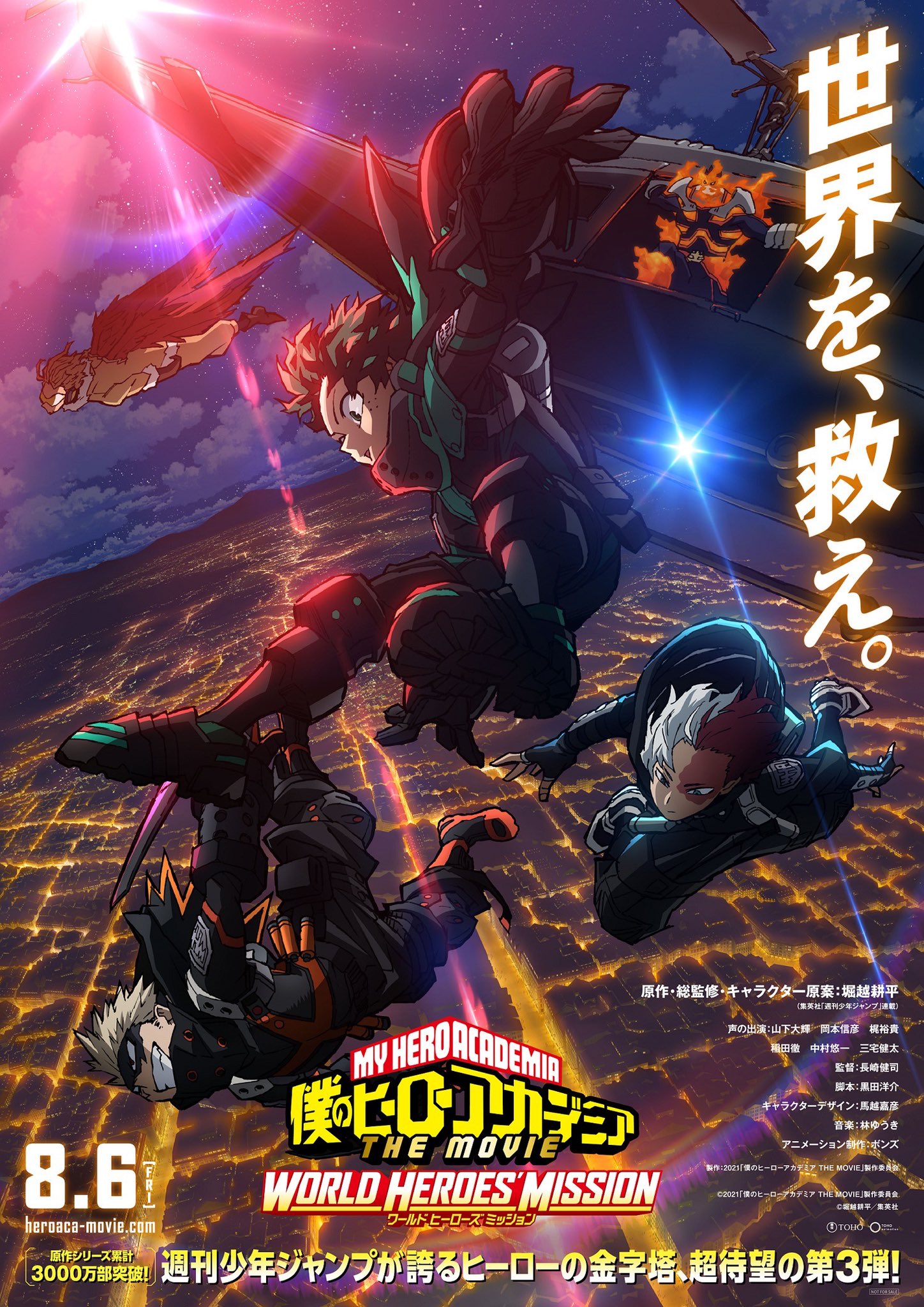 My Hero Academia, anime tentang kisah Deku dan kawan-kawannya yang menimba ilmu di sekolah kepahlawanan ini, sebagaimana telah diberitakan sebelumnya, akan berlanjut kembali dalam musim kelimanya di Jepang pada musim semi tahun 2021 mendatang. Selain itu film layar lebar terbaru dari anime ini juga akan dirilis di Jepang pada musim panas tahun 2021 mendatang. Kini visual dan video teaser terbarunya telah dirilis, di mana terdapat informasi bahwa film layar lebar yang diberi judul My Hero Academia THE MOVIE: World Heroes’ Mission ini akan dirilis di Jepang pada tanggal 6 Agustus 2021 mendatang. Intip video teasernya berikut ini:
