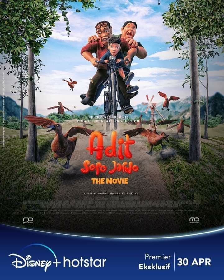 Kini Adit Sopo Jarwo juga diangkat menjadi sebuah film layar lebar dengan judul Adit Sopo Jarwo The Movie, film ini akan dirilis pada 30 April 2021 mendatang. Meskipun begitu, film ini tidak akan dirilis di bioskop, melainkan diputar secara eksklusif melalui layanan Disney+ Hotstar. Adit Sopo Jarwo the Movie sendiri berkisah mengenai Adit bersama Bang Sopo dan Bang Jarwo yang tengah mencari Adel yang menghilang saat Adit sekeluarga sedang berlibur ke luar kota. Film ini disutradarai Hanung Bramantyo dan Eki NF.