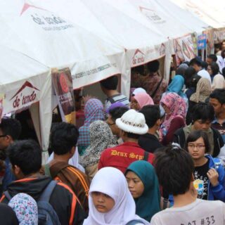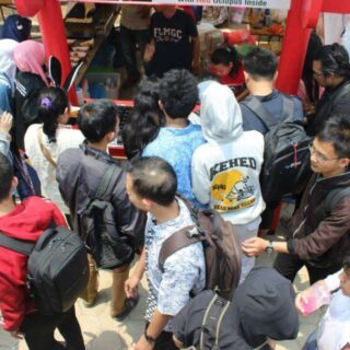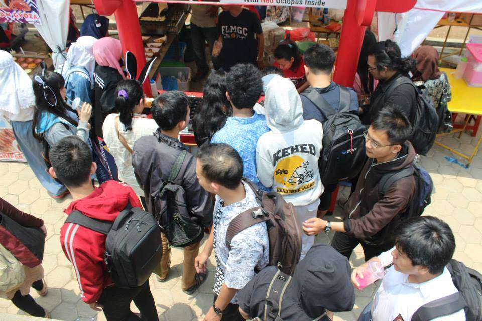Di tengah siang hari yang panas ini, sebagian pengunjung sudah mulai merapat ke beberapa booth makanan untuk mengisi perutnya. Antrean padat nan merayap pun mulai memenuhi area booth makanan, bahkan dalam beberapa kesempatan hampir sulit untuk sekedar berjalan melewati area booth makanan yang sudah dipenuhi pengunjung ini.