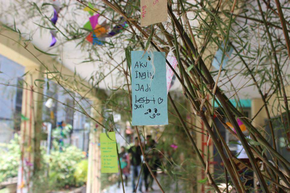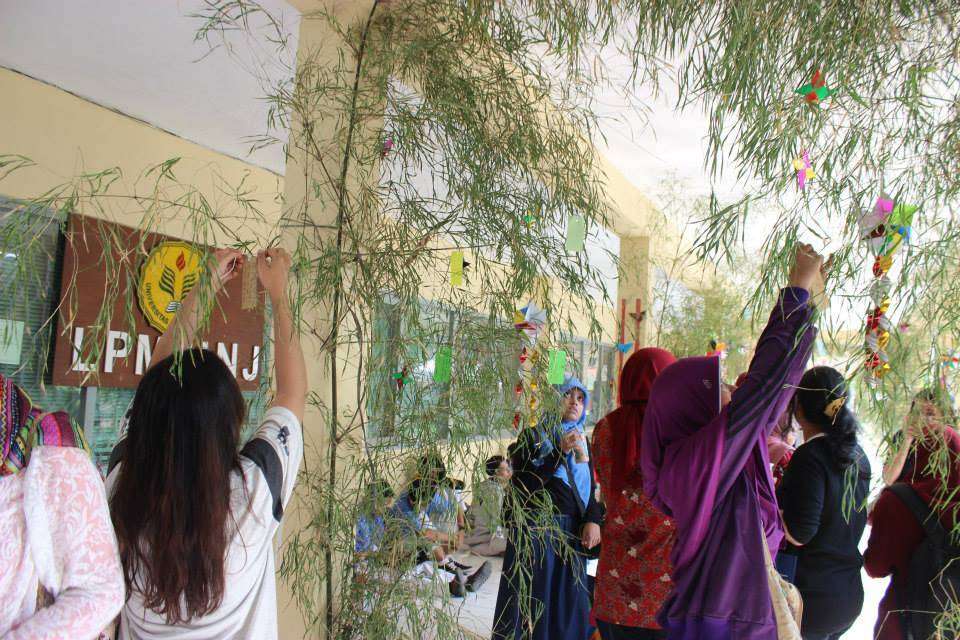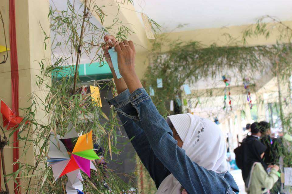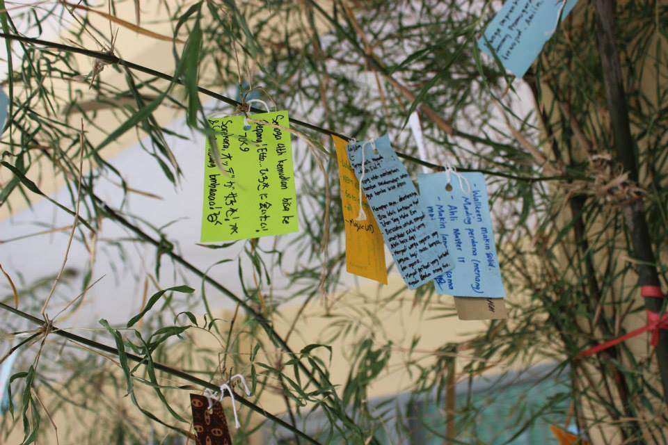 Tidak jauh dari booth yukata, terlihat sebagian pengunjung yang sedang menulis di secarik kertas kecil dan menggantungnya di pohon bambu yang dipasang di selasar. Dengan membayar Rp1000, pengunjung sudah dapat menuliskan tanzaku, kertas harapan yang digantung di pohon yang telah disediakan. Berbagai doa dan permohonan pun digantung disini, mulai dari yang penuh harapan, hingga yang sedikit nyeleneh pun tergantung disini.