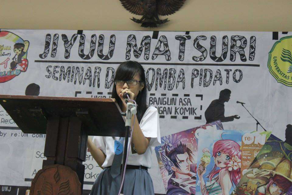Festival ini menampilkan beberapa hal yang cukup menarik. Selain menampilkan festival budaya populer Jepang, Jiyuu Matsuri ini juga menyelenggarakan berbagai macam lomba, salah satunya adalah lomba mading dan pidato dalam bahasa Jepang. Para peserta pidato yang berasal dari SMA di sekitar Jabodetabek ini satu per satu mulai unjuk kebolehan menyampaikan pidato dalam bahasa Jepang.