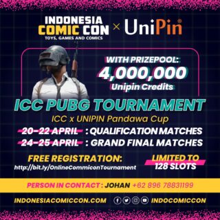 Tidak hanya webinar, penggemar game PUBG Mobile juga dapat mengikuti turnament ICC PUBG Tournament, ICC X UniPin Pandawa Cup. Total hadiah UniPin Credits (UC) sebesar 4.000.000 rupiah dan Exclusive Merchandise ICC siap menanti. Sebelum itu, para gamers harus membuktikan kemampuannya melewati babak kualifikasi di tanggal 20-22 April dan grand final pada 24-25 April 2021.