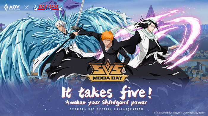 Untuk memeriahkan Event AOV 5V5 Moba Day di bulan Mei 2021, kami berkolaborasi dengan BLEACH, dan merilis berbagai skin termasuk skin Ichigo Kurosaki yang bisa didapatkan melalui Codex Season 30. Kalian bisa melihat kekuatan Hollowfication dan kekuatan Bankai Ichigo Kurosaki di arena pertempuran.