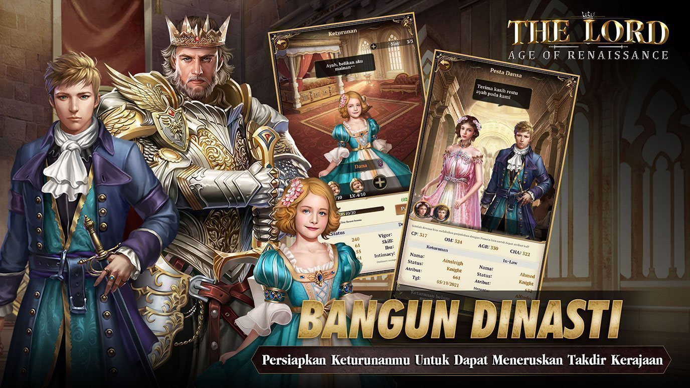 The Lord : Age of Renaissance menyajikan visual, ilustrasi dan desain lingkungan yang realistis dan berwarna, menciptakan pengalaman bermain yang imersif. Kontrol permainan sangat mudah, UI dan menu permainan dapat dikendalikan hanya dengan satu sentuhan untuk mengaktifkan dan menjelajahi semua fitur yang tersedia. Berikut ini adalah beberapa fitur unggulan The Lord : Age of Renaissance :