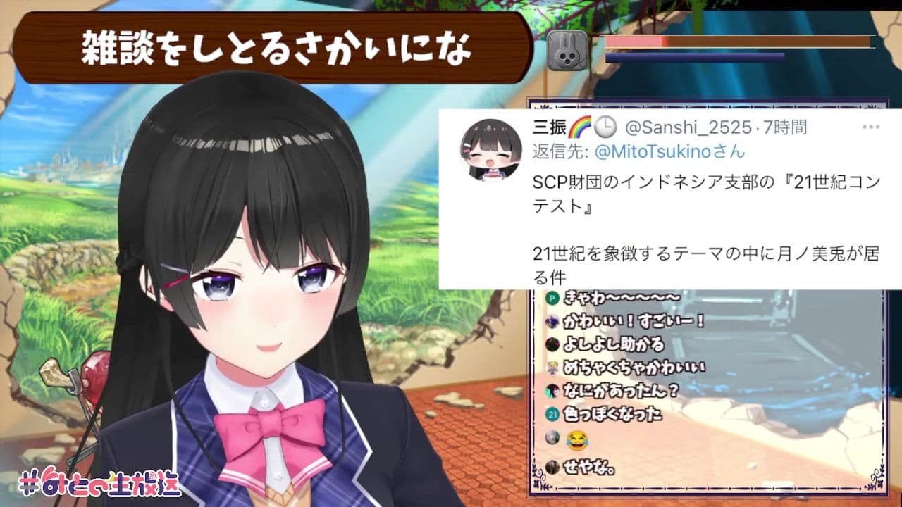 Pada Senin lalu, Tsukino Mito, mengadakan siaran free talk yang mana salah satu topik yang dibahas adalah menanggapi dirinya yang “teridentifikasi” sebagai SCP di Indonesia, seperti dalam thumbnail siarannya. Berdasarkan siaran tersebut, diketahui bahwa Tsukino Mito diberi tahu oleh salah satu fansnya di Twitter bahwa dirinya terpampang sebagai “simbol” pada banner kontes “21st Century Contest 2021” di wiki SCP Foundation Indonesia. Sang vliver mengaku sangat senang dengan desain bannernya.
