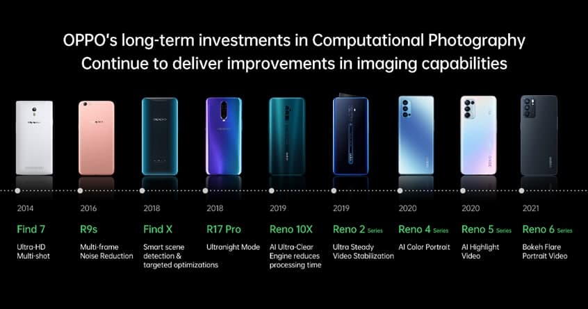 OPPO menerapkan fotografi komputasional sebagai sarana untuk meningkatkan kinerja pencitraan pada produk ponsel cerdasnya. Pada awal 2014, OPPO memperkenalkan Ultra-HD Multi-Shot pada model Find7, yang juga memanfaatkan fotografi komputasional untuk menghadirkan sistem kamera ponsel cerdas yang mampu menghasilkan foto 50MP. Selalu berinovasi dan mengembangkan teknologi selama bertahun-tahun, OPPO telah membuktikannya dengan membuat terobosan signifikan dalam videografi smartphone.