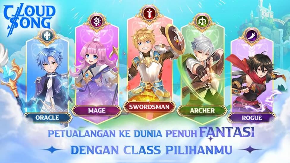 Dunia fantasi indah yang bisa kamu jelajahi bersama teman-temanmu ini menawarkan 5 kelas yang bisa kamu pilih. Kelas tersebut adalah, Mage, Archer, Swordsman, Oracle, dan Rogue.