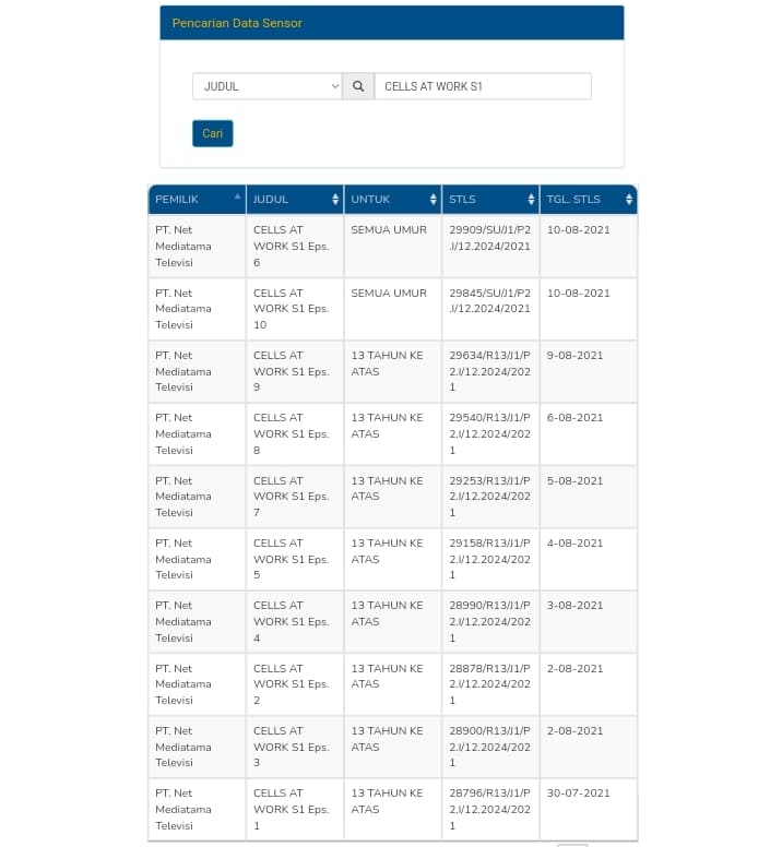Hataraku Saibou!, anime yang berkisah mengenai personifikasi dari cara kerja sel tubuh manusia ini sebagaimana telah diberitakan sebelumnya, rencananya akan tayang di Indonesia. Adalah saluran televisi NET Mediatama Televisi atau NET yang telah mendaftarkan anime tersebut kepada Lembaga Sensor Film dengan judul terjemahannya, yakni Cells at Work! Masih belum ada informasi kapan kiranya anime ini akan ditayangkan di NET. Namun berdasarkan informasi dari Lembaga Sensor Film, seluruh episode reguler dari season pertama animenya, yaitu episode 1 hingga 13 telah lulus sensor semuanya, dan siap untuk ditayangkan di televisi. Tidak jelas apakah episode spesialnya akan turut ditayangkan di televisi juga atau tidak.