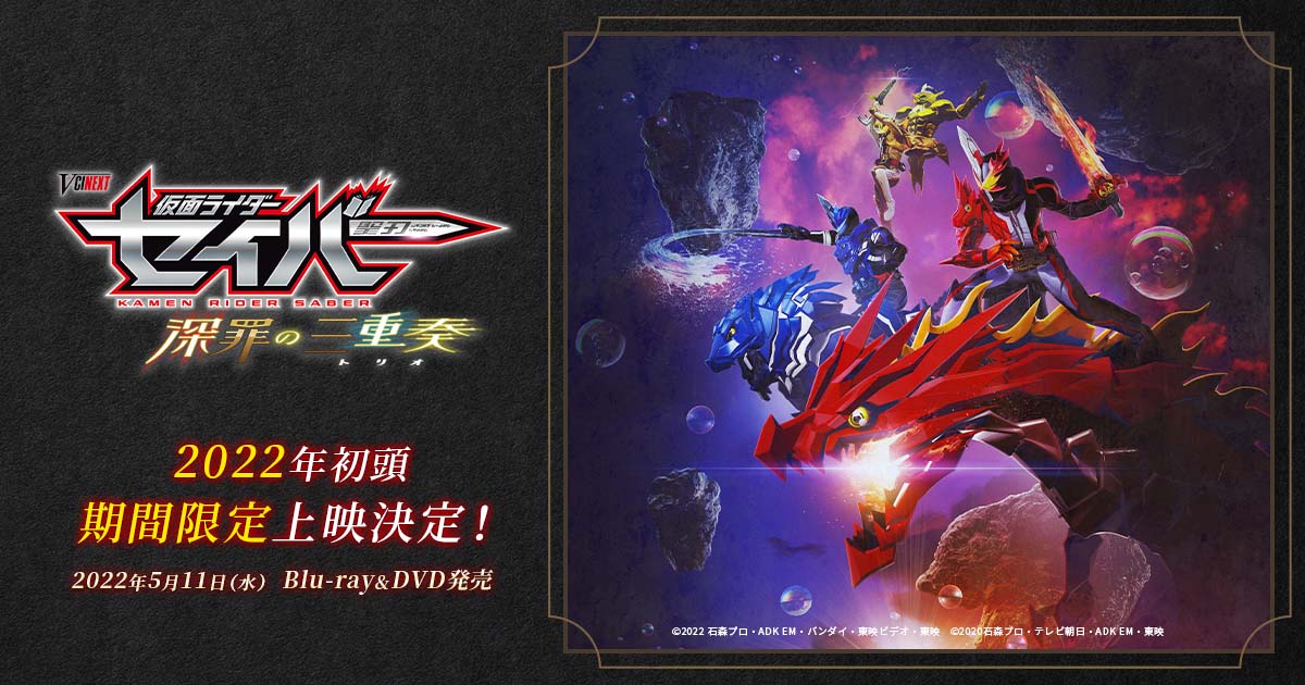 Film ini akan kembali ditulis oleh penulis utama serialnya, Takuro Fukuda dan disutradarai oleh Kazuya Kamihoriuchi (Kamen Rider Build). Kamen Rider Saber: The Trio of Deep Sin akan diputar secara terbatas di seluruh bioskop Jepang pada awal 2022 dan kemudian akan dirilis dalam format Blu-ray dan DVD pada 11 Mei 2022. Rilisan Blu-ray dan DVD edisi terbatas dari film ini juga akan dibandrol dengan mainan DX Arabiana Night dan Gekkou Raimeiken Ikazushi ditambah dengan Amazing Siren Wonder Ride Book, yang kemungkinan merupakan item power-up untuk Kamen Rider Espada dan Kamen Rider Blades dalam film tersebut.