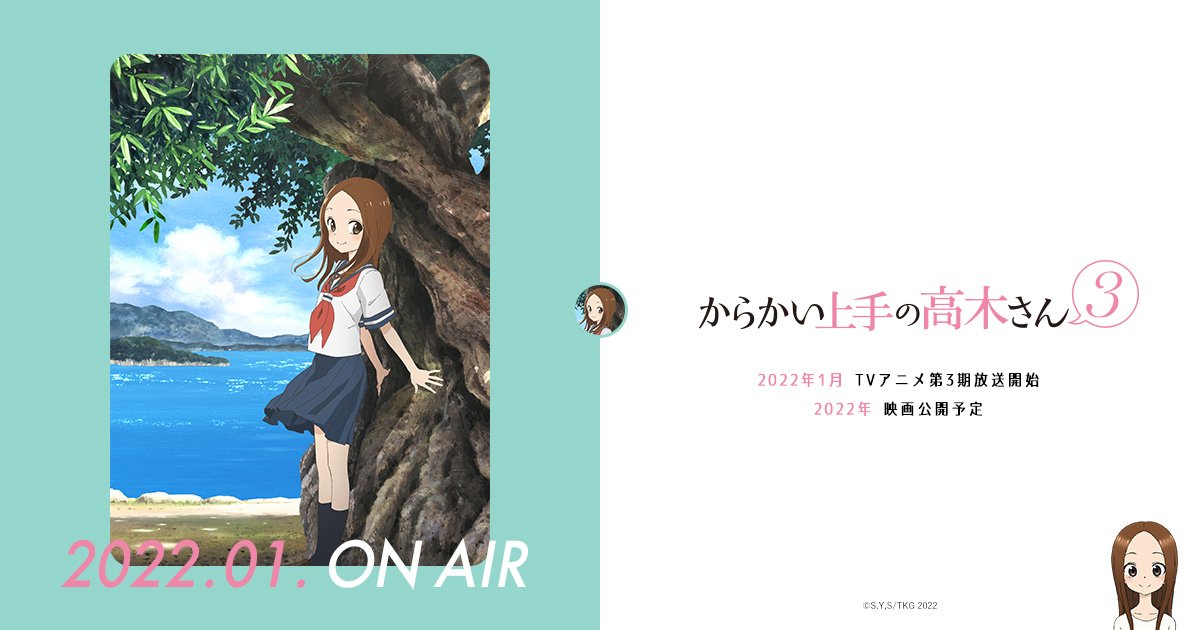 Teasing Master Takagi atau Karakai Jouzu no Takagi-san, adaptasi anime dari komik karya Souichirou Yamamoto ini telah dipastikan akan hadir kembali pada season ketiganya. Season ketiga ini akan dirilis di Jepang pada bulan Januari 2022 mendatang, dengan tanggal rilis yang belum dipastikan. Selain itu sebuah film layar lebar juga akan dirilis di tahun yang sama.