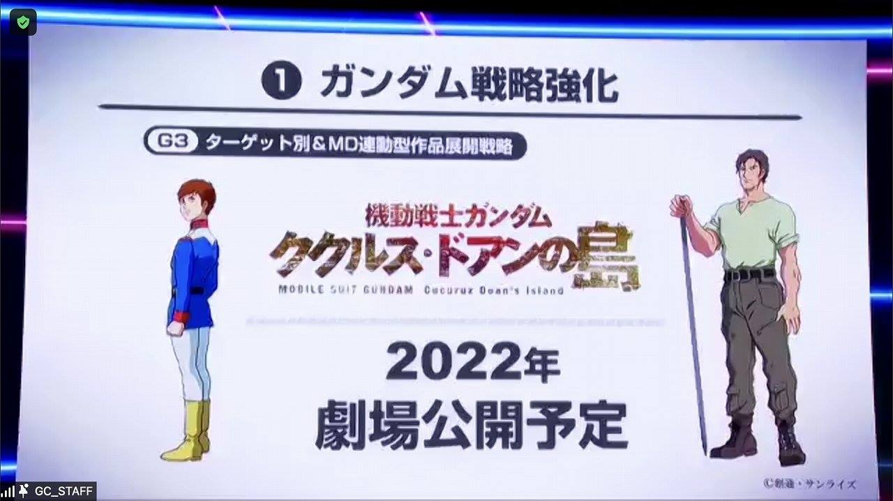 Pada tahun 2022 mendatang, Sunrise akan mempersembahkan 3 buah anime Gundam terbaru. Ketiga anime tersebut adalah The Witch From Mercury, Cucuruz Doan’s Island, dan Iron-Blooded Orphans TV Special. Masih belum ada informasi lebih lanjut mengenai tanggal perilisan ketiga anime baru tersebut.