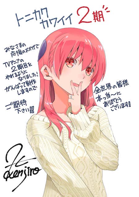Pada Sabtu (5/11), lewat web resmi anime Tonikaku Kawaii/Fly Me to the Moon, diumumkan bahwa seri anime tersebut akan berlanjut ke musim keduanya. Dalam musim keduanya, akan dihadirkan kembali para staf dan seiyu pada musim sebelumnya. Kenjiro Hata, sang komikus juga merilis ilustrasi Tsukasa untuk merayakan musim kedua nya.