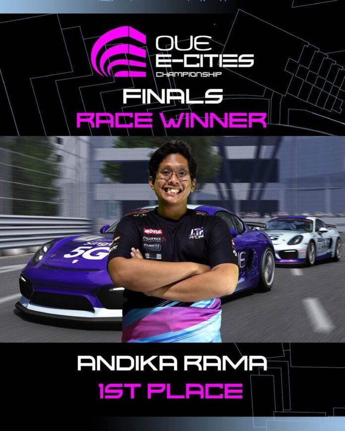 Pembalap virtual Andika Rama Maulana kembali mengharumkan nama Indonesia kala memenangkan lomba balap virtual OUE E-Cities Championship 2021 yang digelar beberapa waktu yang lalu. Ia berhasil mengungguli rekan se-negaranya Presley Martono yang berada di urutan kedua, dan pembalap virtual muda Singapura Dillan Tan yang berada di urutan ketiga, dalam putaran final yang diikuti oleh 25 peserta. Ketiganya masing-masing berhak atas hadiah sebesar SGD4500 (sekitar 50 juta rupiah), SGD3000 (sekitar 30 juta rupiah), dan SGD1500 (sekitar 15 juta rupiah).