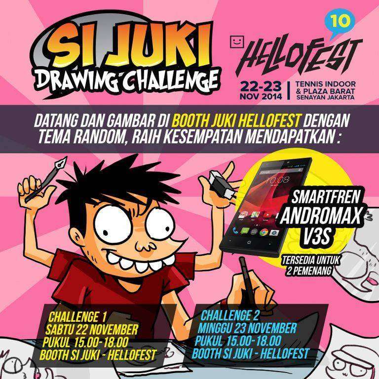 Menjelang perhelatan HelloFest Anima Expo ke-10 pada akhir pekan ini, salah satu karakter komik lokal yang (mengaku) anti-mainstream (padahal sudah mainstream terlalu), Si Juki, menantang para pengunjung untuk kontes menggambar.