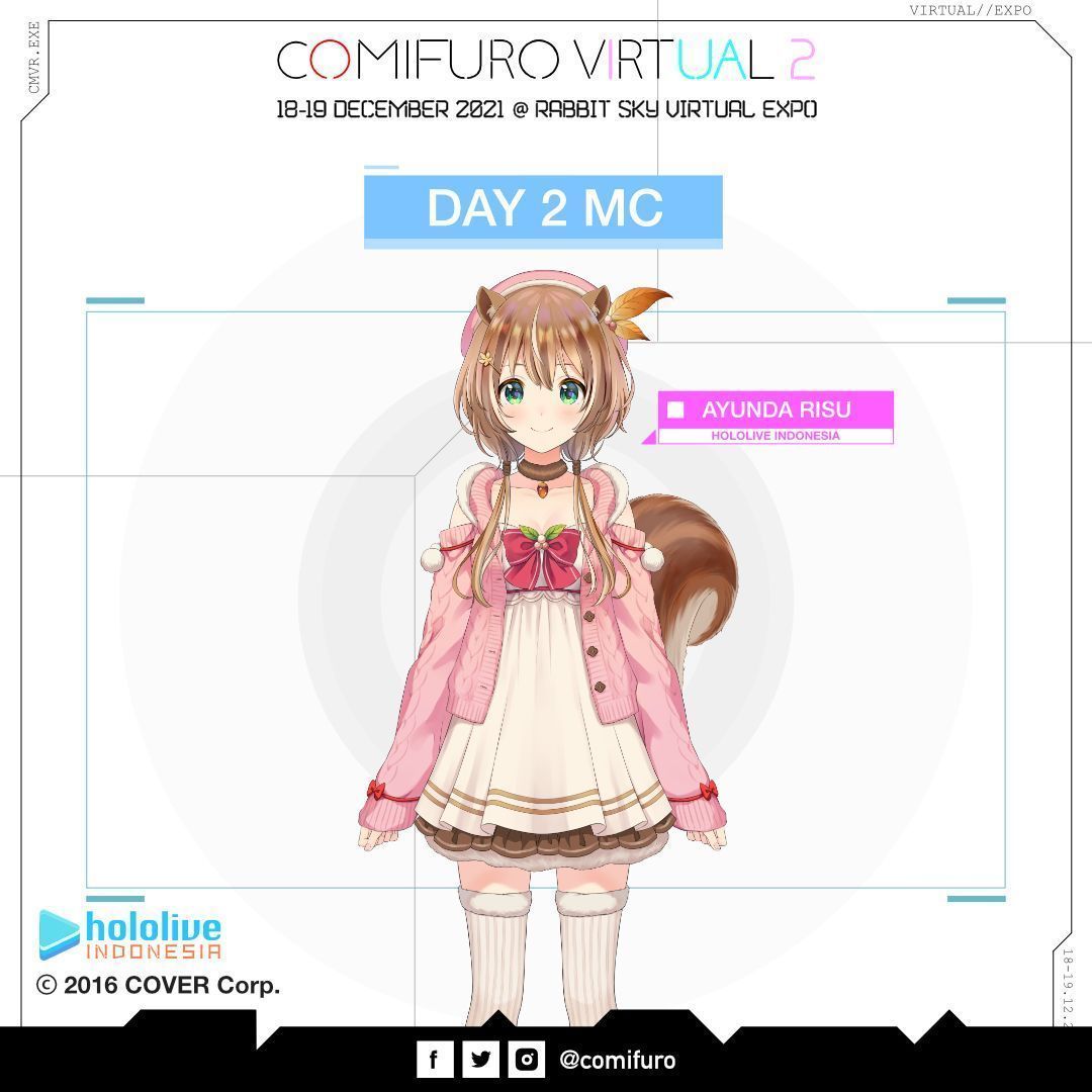 Kemudian di hari Minggu, 19 Desember 2021 talenta virtual dari agensi hololive Indonesia hadir untuk memeriahkan acara Comivuro 2. Ayunda Risu, sang gadis tupai ajaib akan menemani para pengunjung sebagai MC di hari Minggu. Ada juga sang putri merak Pavolia Reine yang akan menjadi bintang tamu untuk membawakan sesi kelas bahasa Jepang serta mengadakan Meet & Greet bagi pengunjung yang sudah membeli tiket Meet & Greet tersendiri. Jaret Fajrianto, karakter virtual yang semula berawal dari karakter komik 4 panel Ghosty’s Comic juga turut hadir di hari Minggu untuk menghadirkan sebuah persembahan yang istimewa untuk seluruh pengunjung.