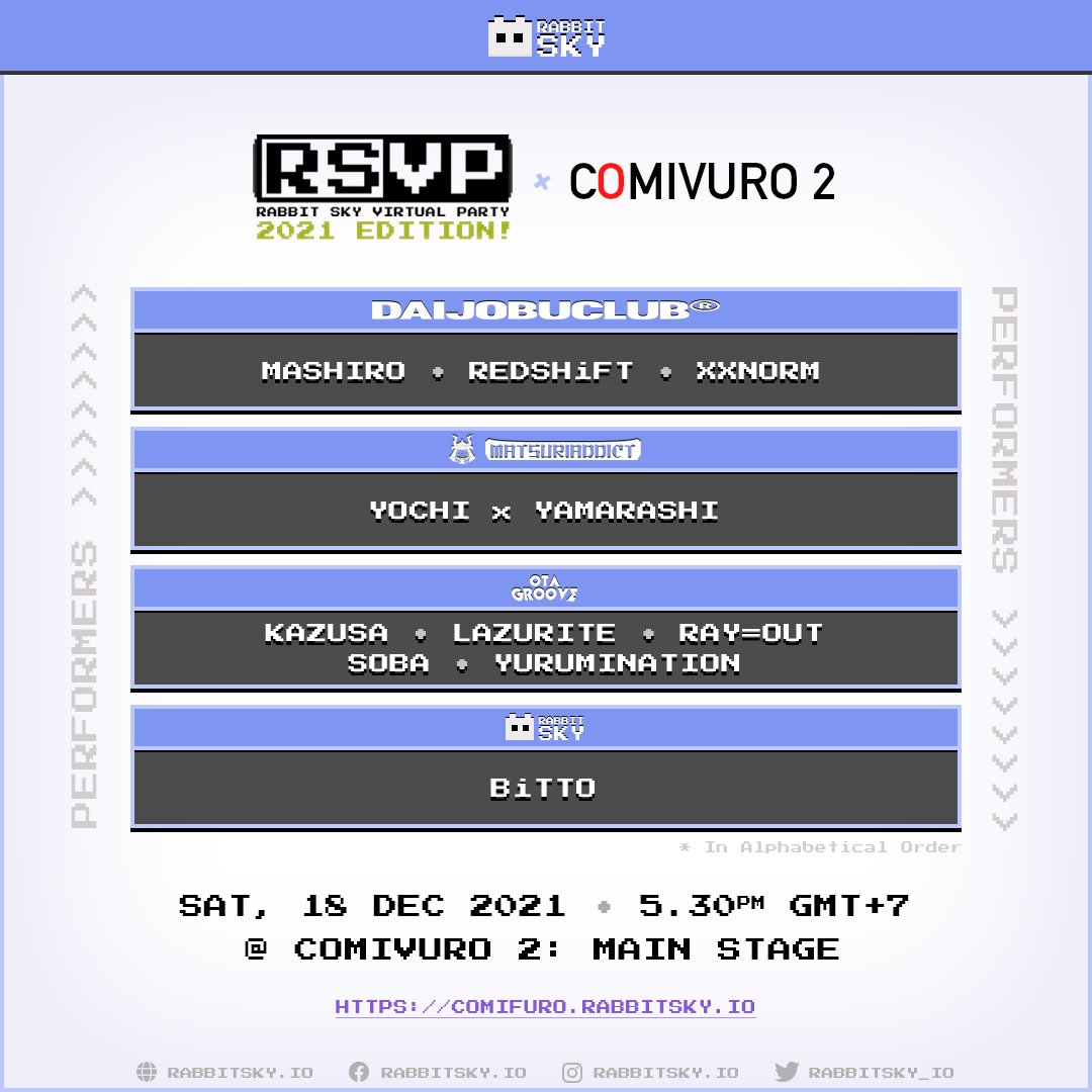 Untuk menghadirkan venue virtual ini Comivuro 2 bekerja sama dengan pengembang ruang virtual interaktif (metaverse) Rabbit Sky. Dalam venue virtual ini ada 7 (tujuh) hall ekshibisi dan 1 (satu) area panggung utama yang bisa dikunjungi. Ada lebih dari 400 kreator yang bisa dikunjungi secara virtual dalam area ekshibisi, di mana pengunjung bisa melihat berbagai katalog karya kreatif melalui interaksi virtual. Sedangkan di area panggung utama, pengunjung bisa menyaksikan konten acara utama yang disiarkan secara langsung.