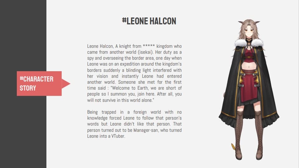 Bersamaan dengan meluncurnya agensi, mereka juga meluncurkan talentnya VTubersnya. Ketiga VTubers ada si Pelayan Serigala, Gentiana Helix. Lalu ada Griffin dari Isekai (dunia lain), Leone Halcon. Lalu ada Hamster hasil lab percobaan, Louise Khikume. Ketiganya melakukan stream debut pada tanggal 24 September 2021.