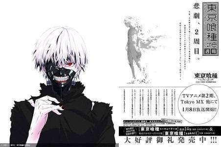 Setelah sebelumnya sempat diberitakan, majalah Young Jump Magazine baru-baru ini menginformasikan bahwa anime Tokyo Ghoul musim kedua akan mulai mengudara pada 8 Januari 2015 melalui stasiun televisi Jepang TOKYO MX.