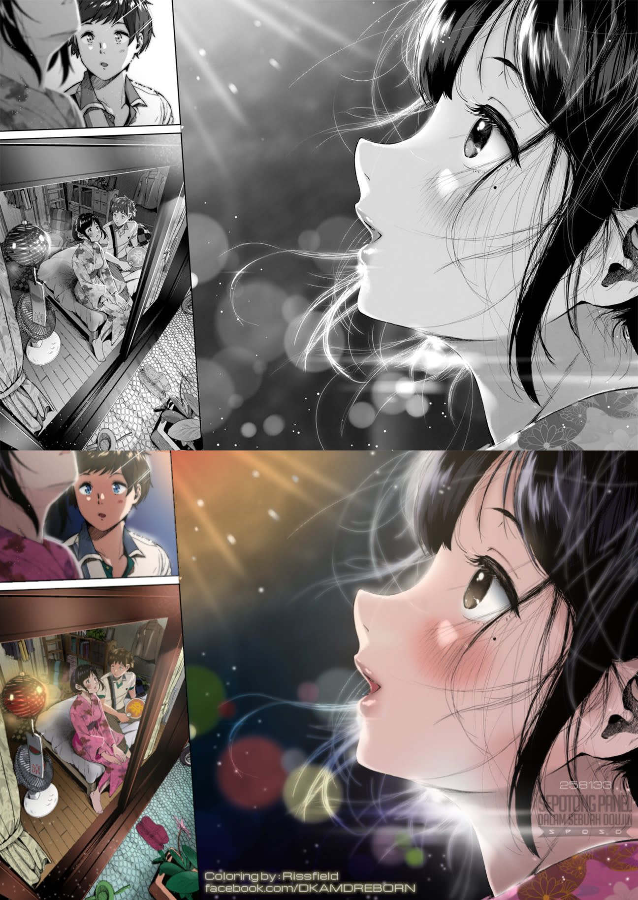 R: Untuk fanspage kami yang sekarang, yang sharing doujin, itu udah beberapa bulan terakhir kurang aktif soalnya saya sibuk juga. Apalagi one man army, jadi gak sempet recolor buat di-post di fanspage. Kalo Fanspage-nya K itu lebih aktif.