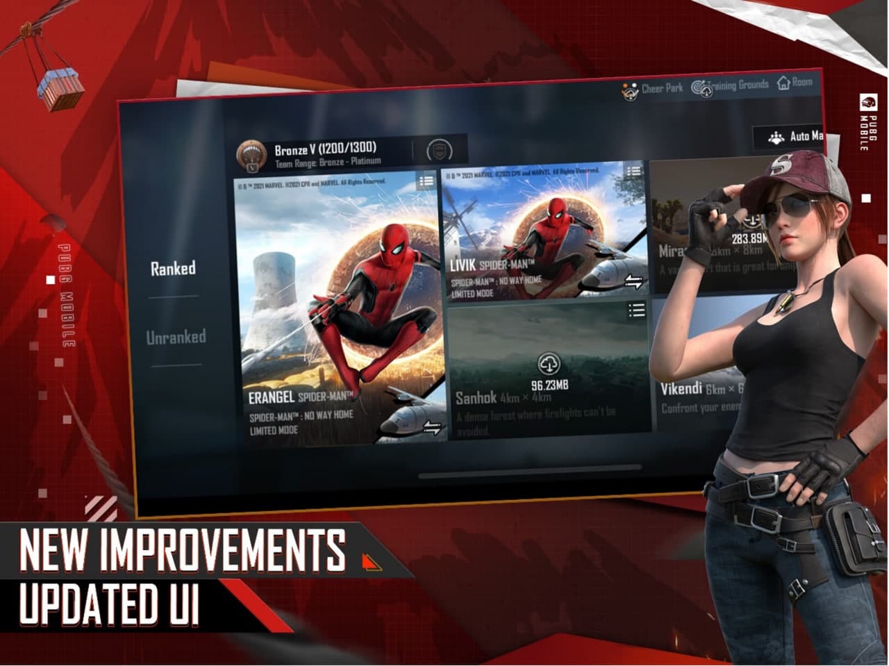 - Tantang Boss: Temukan Mylta Power (Erangel) dan bertempur bersama Spider-Man.
