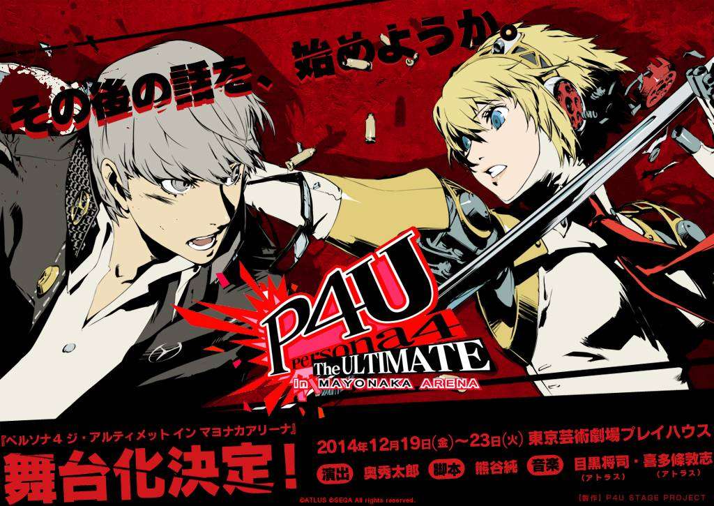 Pementasan drama panggung Persona 4 Arena akan digelar di rumah pementasan Geijutsu Gekijō yang bertempat di Tokyo, Jepang. Untuk jadwal pementasannya sendiri akan digelar mulai tanggal 19 hingga 23 Desember 2014. Bagi anda yang berminat menonton pementasan drama ini, cukup keluarkan uang sebesar 9800 Yen (sekitar 1,2 juta Rupiah) untuk tiket kelas eksekutif, atau 6800 Yen (sekitar 820 ribu Rupiah) untuk tiket kelas biasa. Tiket pementasan ini sudah bisa dipesan sejak tanggal 28 September lalu.