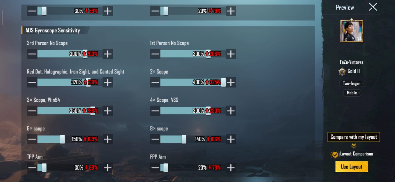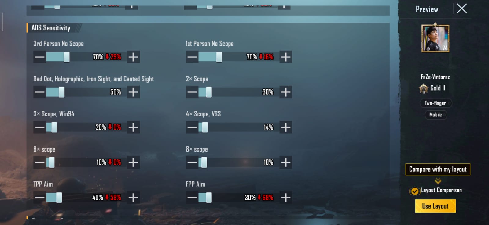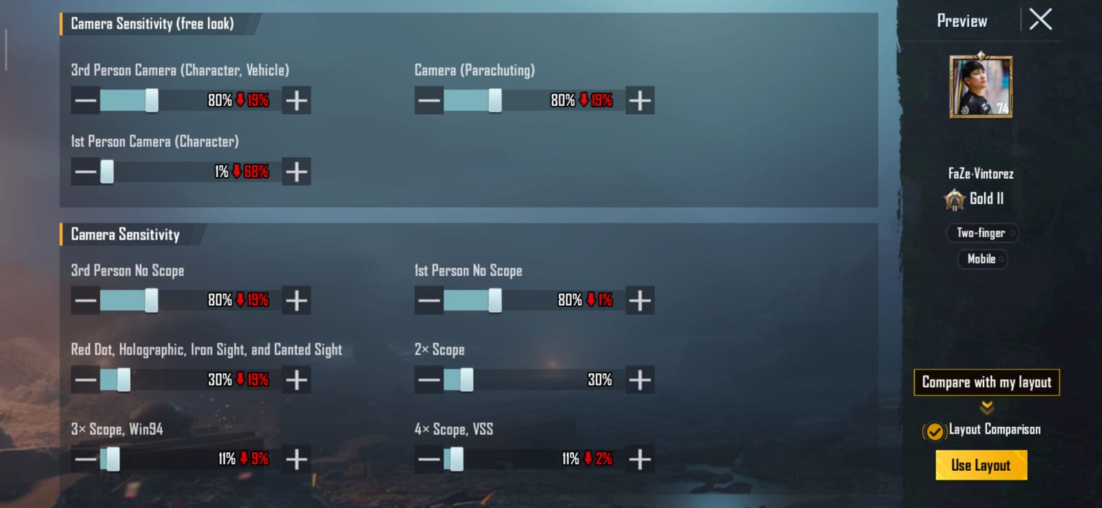 Untuk performa yang semakin maksimal, kombinasikan setting sensitivitas Vintorez dengan setting layout berikut: