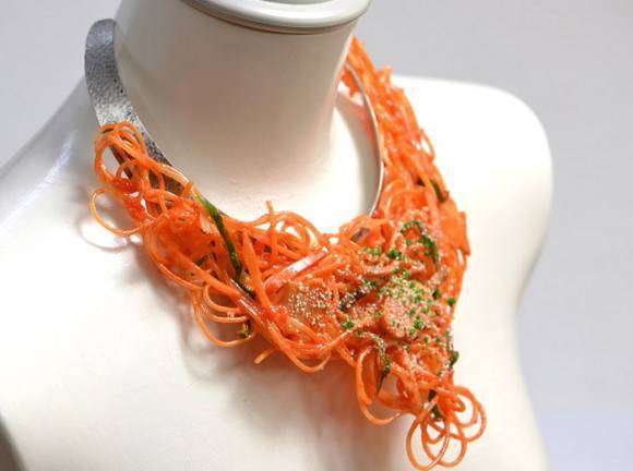Kali ini, sebuah perusahaan replika makanan menciptakan inovasi baru yaitu dengan menjual kalung berbentuk replika makanan. Fake Food Hatanaka merilis beberapa kalung yang menggunakan bentuk berbagai macam replika makanan, mulai seperti Nasi Kare, Spaghetti, hingga Nasi Omelet. Kalung yang dijual dengan harga 7,900 yen (Rp 818.733,00) ini juga ramai di perbincangkan di Twitter, berikut contoh komentar-komentar pengguna twitter setelah contoh gambarnya muncul di ‘kicauan’ pengguna 96_33: