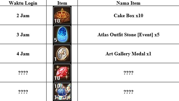 Sebuah event bertajuk Attemp Login. Attempt login sendiri merupakan sebuah event yg di dedikasikan bagi kalian para Atlantian, di mana jika kalian login minimal 2 Jam sehari maka kalian akan mendapatkan berbagai macam item menarik Langsung! Tanpa Diundi!