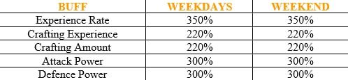 Rate Up Silence, kali ini para Atlantian akan mendapatkan keunggulan EXP untuk seluruh Server setiap harinya selama periode event berlangsung. Berikut rincian EXP yang akan didapatkan jika kalian bermain selama periode event.