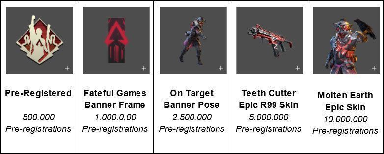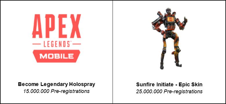 Jutaan pemain game ini pada platform Android maupun iOS di seluruh dunia telah menantikan kesempatan untuk mendapatkan hadiah yang dijanjikan. Dan kini, daftar hadiah pra-registrasi yang akan ditambahkan adalah “Become Legendary” Holospray jika mencapai 15 juta pendaftar dan “Sunfire Initiate” Epic Skin apabila menginjak angka 25 juta pendaftar.