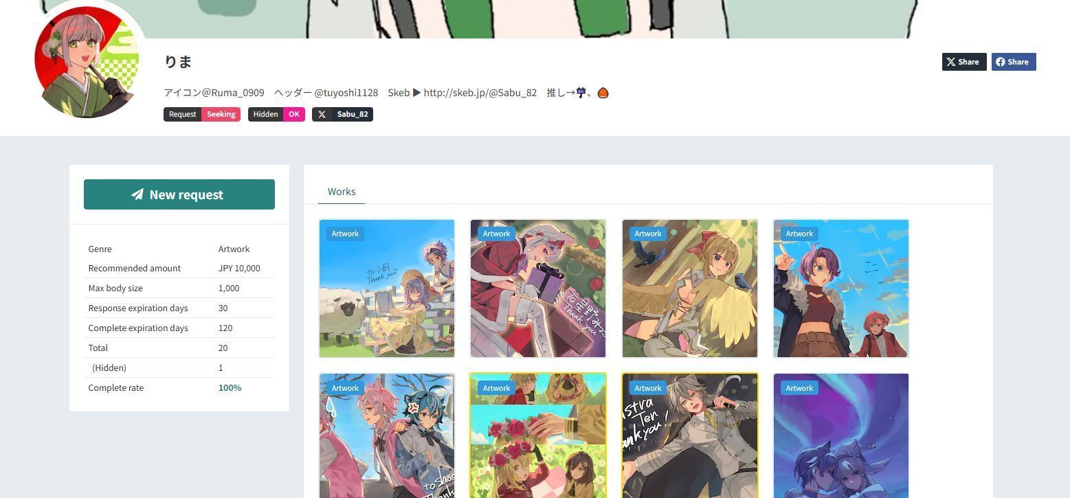 Dalam pencarian ini, kalian juga dapat melihat berapakah harga yang mereka inginkan, atau statistik profil Skeb mereka. Berikut detilnya: