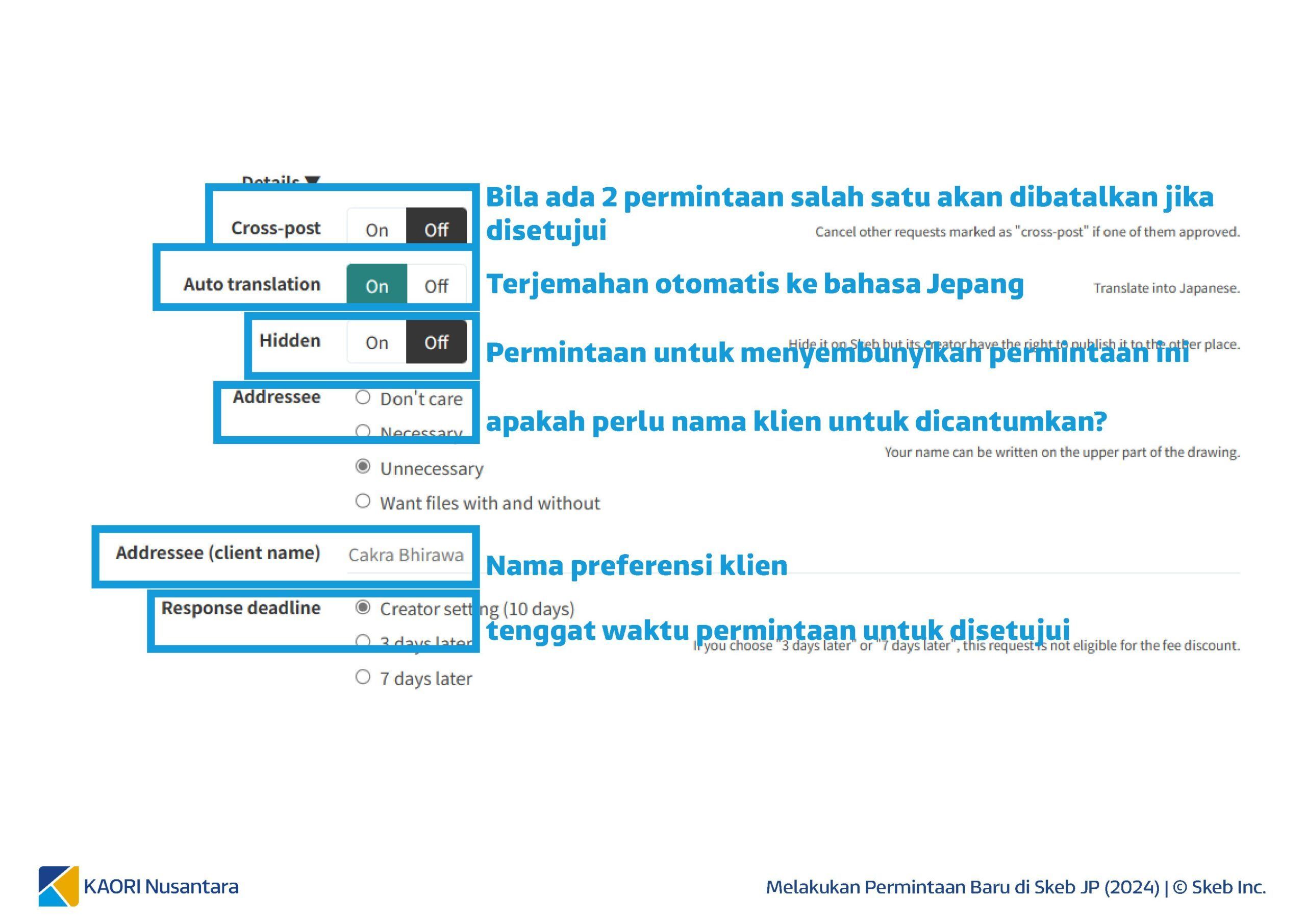 - Anonymous, apabila kalian tidak ingin nama kalian terpampang di situs Skeb maka kalian dapat mengaktifkan opsi ini.