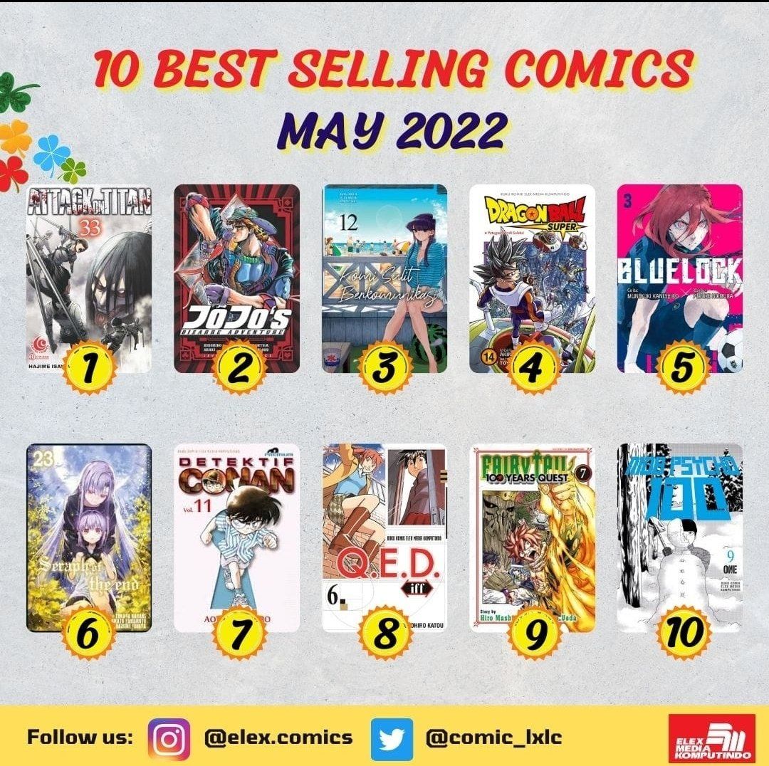 Melalui akun media sosialnya, penerbit Elex Media Komputindo telah memublikasikan judul-judul komik best seller terbitan mereka selama bulan Mei 2022. Inilah komik-komik Best Seller Elex Media Mei 2022: