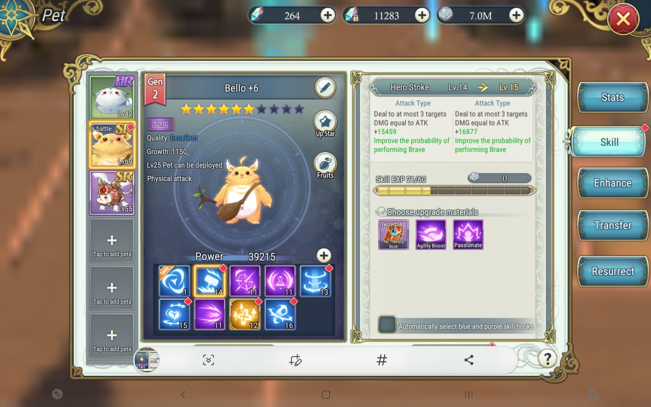 Pet memiliki berbagai skill yang bisa kita gunakan dalam battle dan juga skill support.