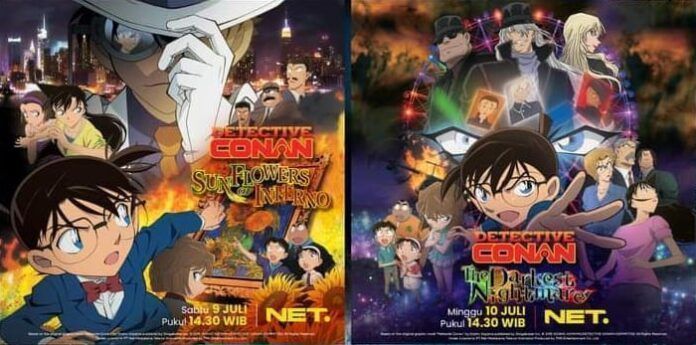 NET juga sempat dikabarkan akan menayangkan 5 judul film layar lebar Conan. Kelima film tersebut adalah Sunflower Of Inferno, The Darkest Nightmare, The Crimson Love Letter, Zero The Enforcer, dan The Fist Of Blue Sapphire. NET melalui akun Twitternya sempat mengumumkan bahwa film Sunflower Of Inferno dan The Darkest Nightmare akan ditayangkan NET pada hari Sabtu dan Minggu, tanggal 9 dan 10 Juli 2022, pada pukul 14.30 WIB.